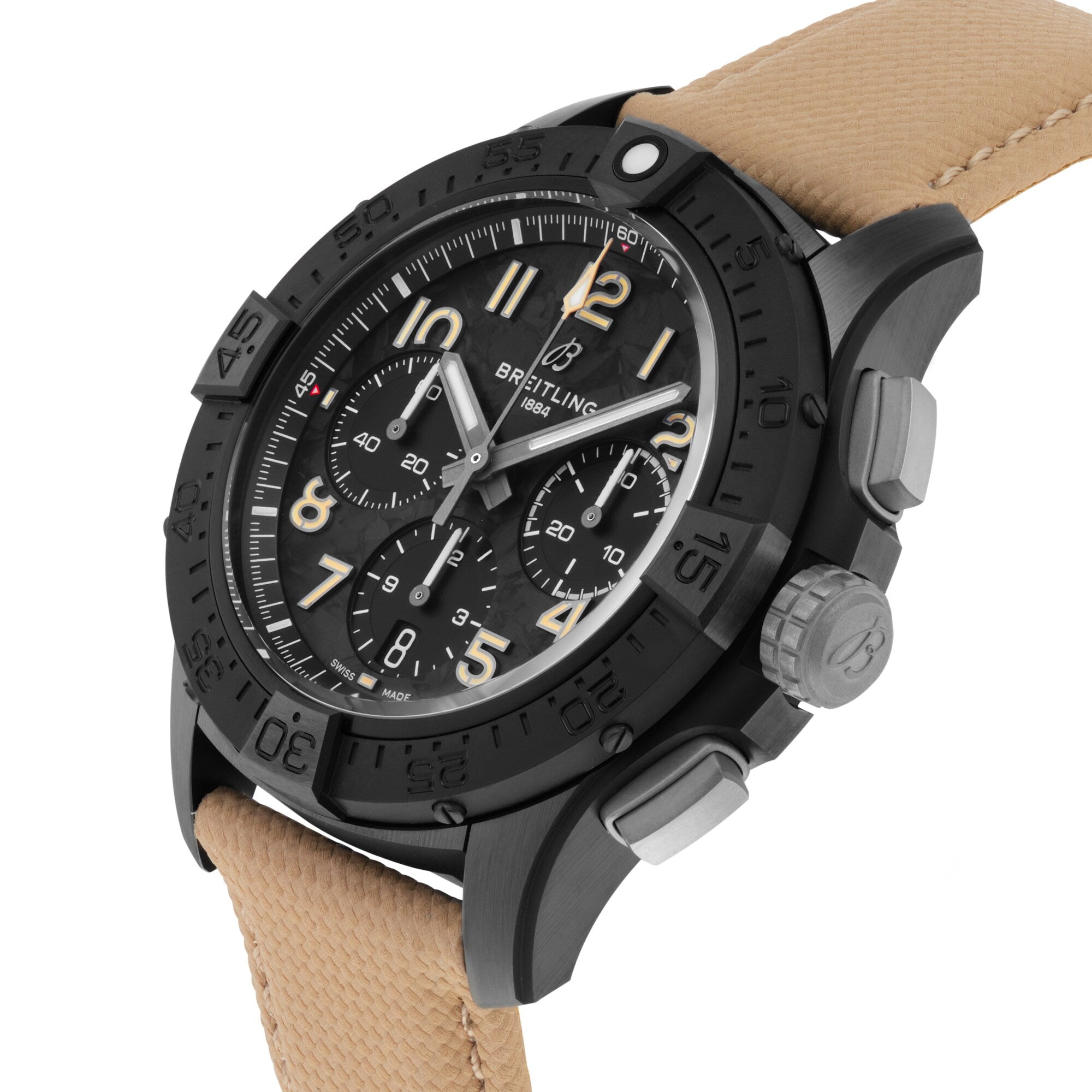 Experience the ultimate combination of strength and functionality with the Avenger B01 Chronograph 42 Night Mission. This exceptional timepiece, designed for jet pilots, exudes boldness and resilience w hile offering advanced functionality. The modern aviation style is evident in the choice of materials, including ceramic and titaniu m, and the dial colors inspired by military uniforms. Choose between a military leather strap or a stainless-steel bracelet, both fe aturing secure clasps, and appreciate the Avenger's 300m water resistance, easy-grip function, and corrosion-resistant construction. Live up to the supersonic standards with the Avenger B01 Chronograph 42 Night Mission.