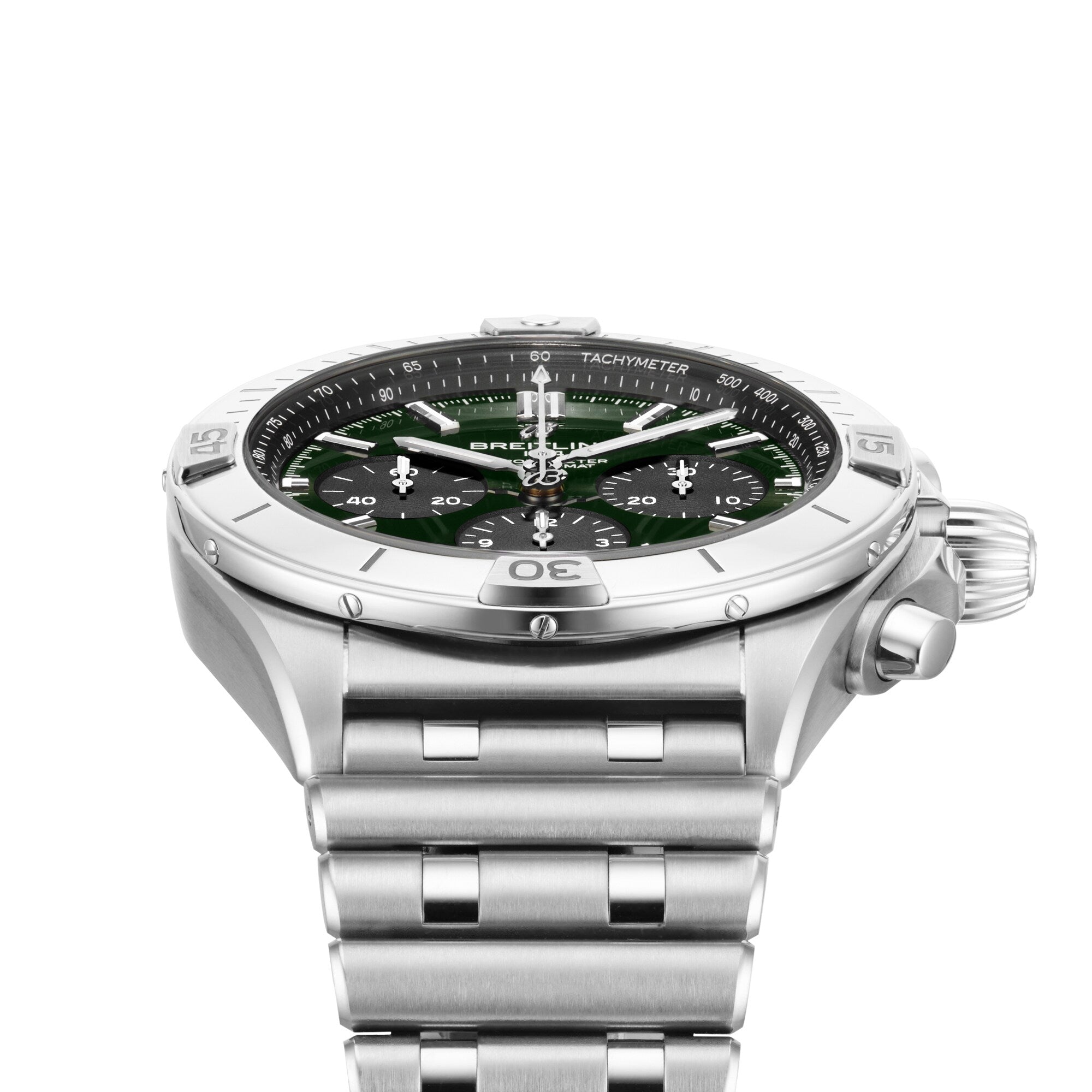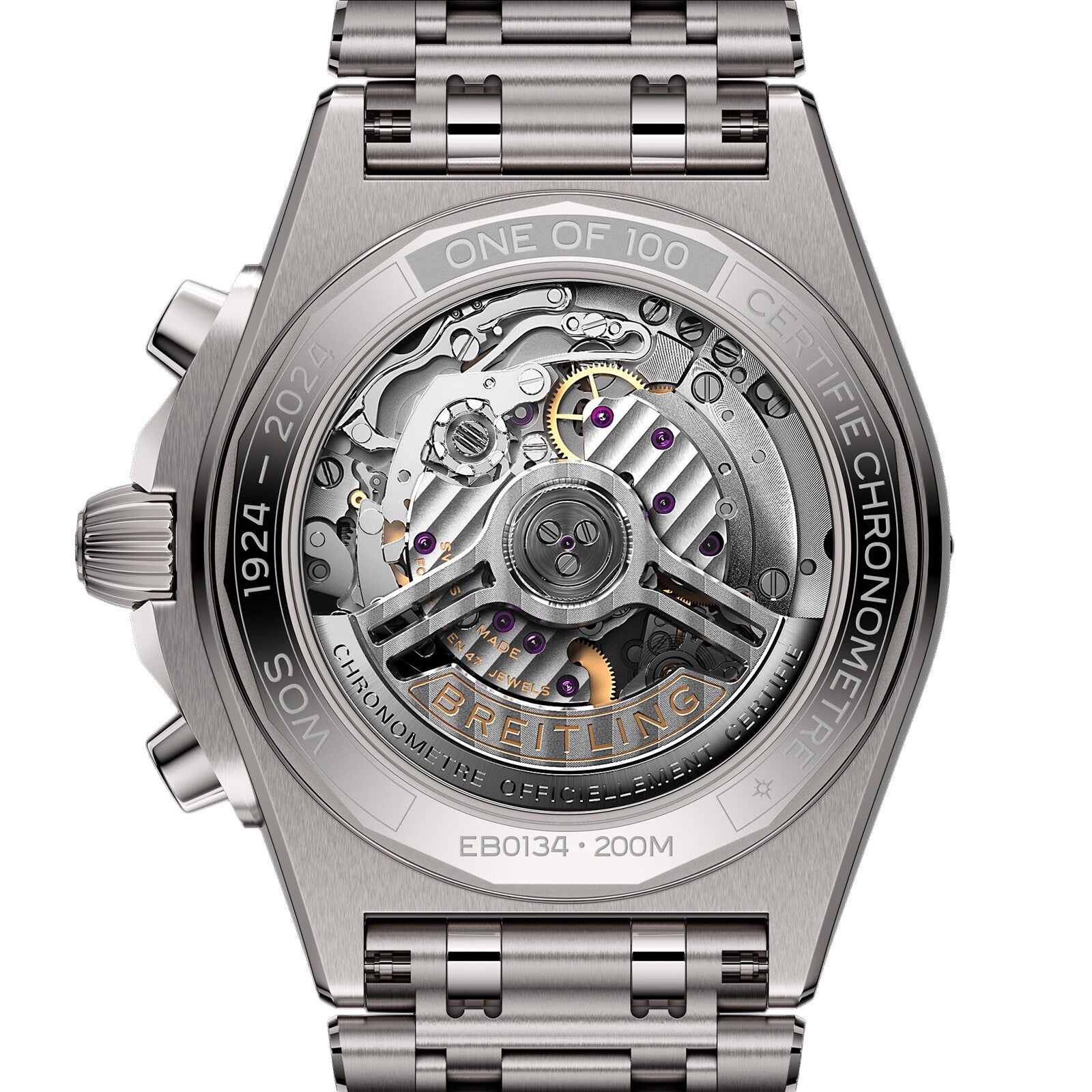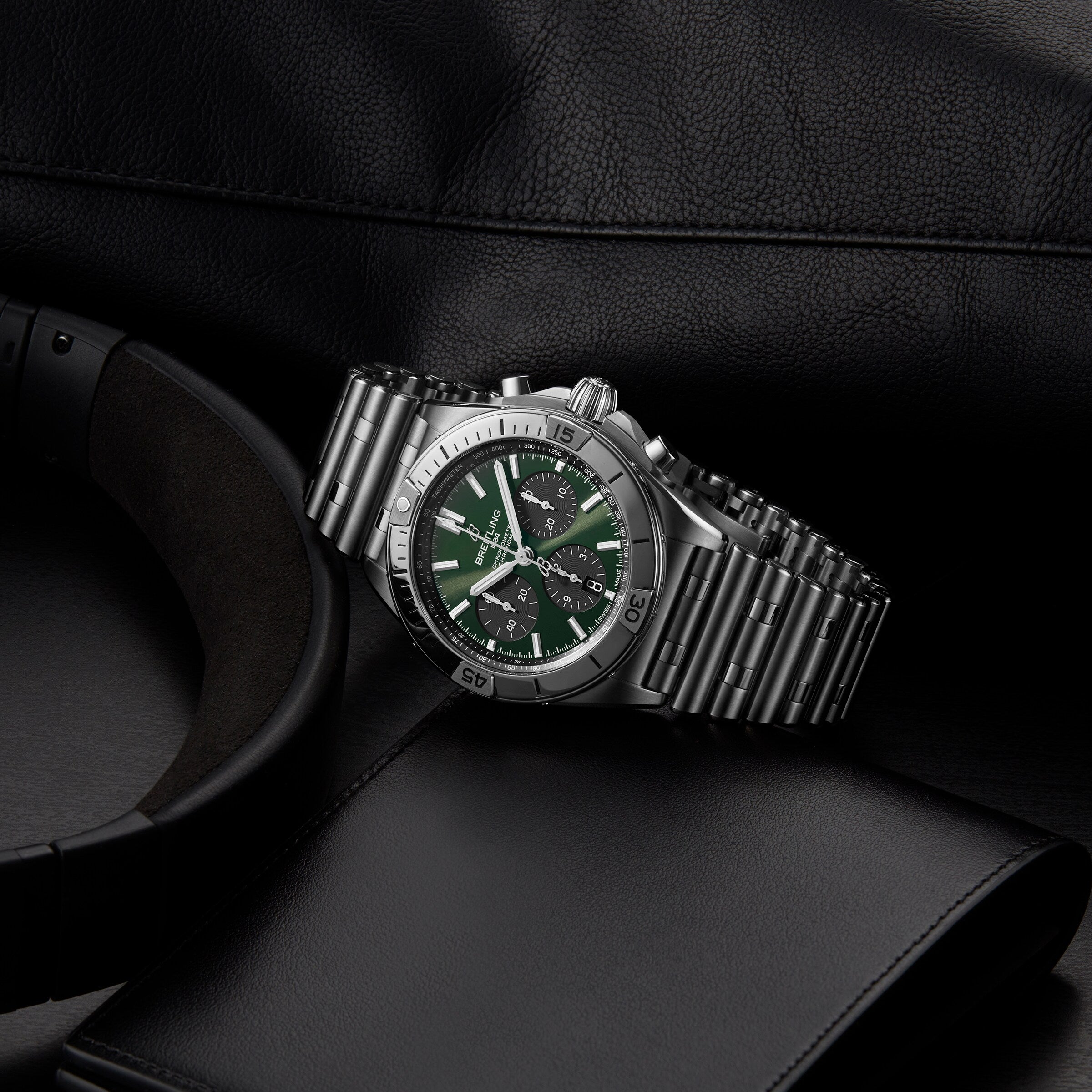 42mm in size and crafted in titanium - which is a first for this collection this year - this piece of course, includes the iconic rider tabs to protect the sapphire crystal and is equipped with the Rouleaux bracelet, which is also in titanium. With a green dial and anthracite subdials, this exclusive houses the B01 Manufacture Calibre, that can be seen through the open caseback along with a special engraving of ‘One of 100’ and our Centenary years. Limited to 100 pieces worldwide, the Breitling Chronomat Titanium perfectly embodies the brand’s entire philosophy and mission, celebrating not only 100 years of Watches of Switzerland but also 140 years of Breitling and watchmaking excellence.