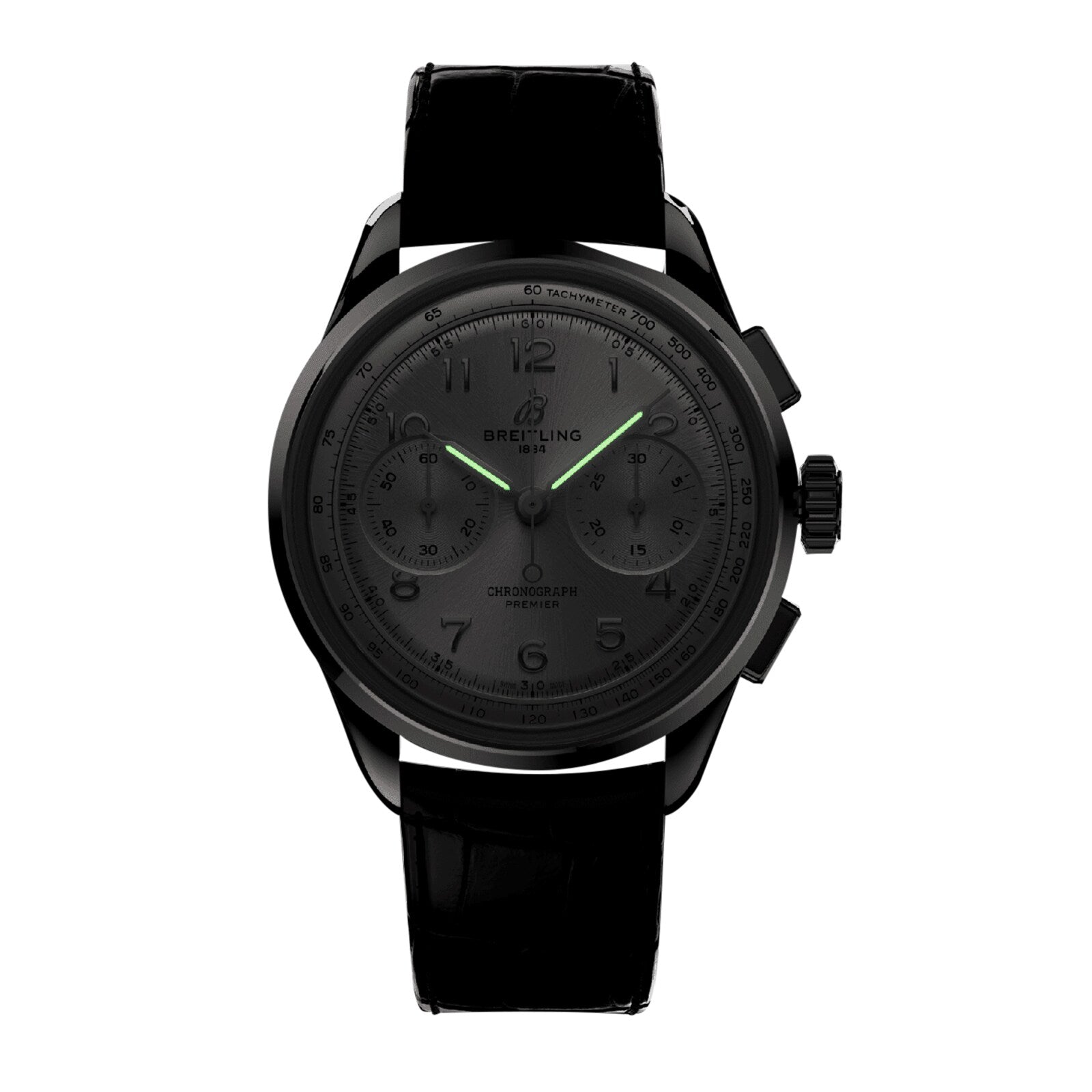 Premier Collection- functional and elegant A symbol of hope and optimism 40mm stainless steel case and black leather strap Powered by Breitling 09 calibre movement Water resistant to 10 bar (100 metres) THE PREMIER COLLECTION A symbol of hope and optimism, the Premier Collection was designed during the 1940s when Willy Breitling looked toward a time after the war. Functional but also elegant, this collection is an undeniably stylish. Modern Premier pieces preserve vintage Premier details, including the smooth bezel, twin dial, and applied Arabic numerals. BLACK BEAUTY A 40mm stainless steel case, paired with a black alligator leather strap, protects a brilliant white dial balanced by two sub dials and silver toned details. Equipped with chronograph function, this watch also houses Duograph split second, the Datora full calendar, and the Tourbiliion. Powered by the COSC certified Breitling 09 calibre movement, this watch houses a 70 hour power reserve and offers water resistance to 10 bar (100 metres).