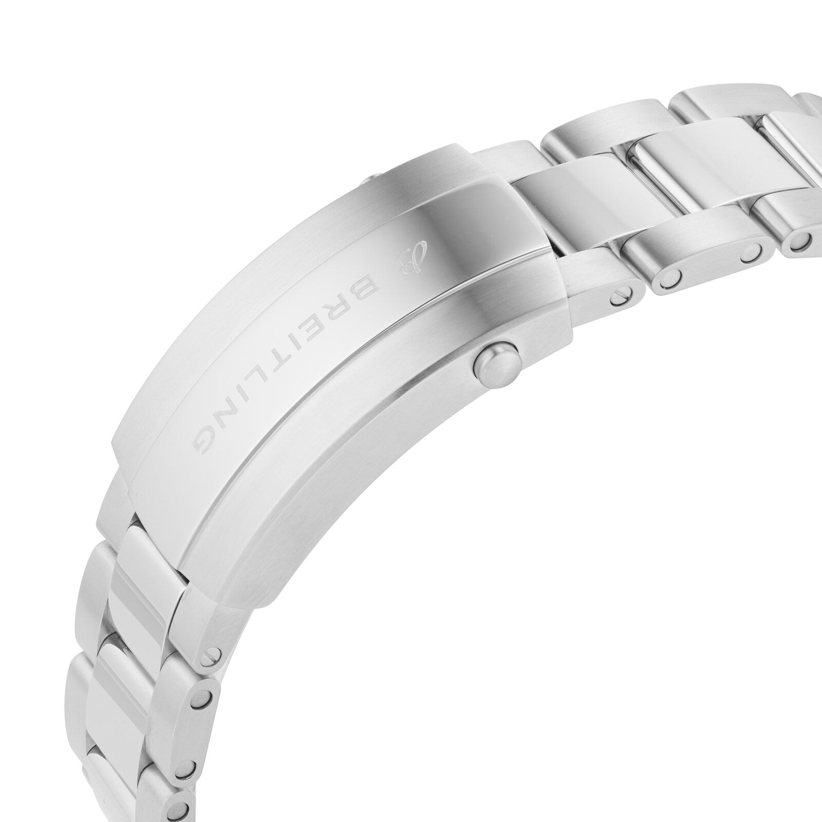 Enhances performance and style Water resistant up to 30 bar (300 metres) Presented in a 46mm stainless steel case and bracelet Powered by Breitling 17 calibre movement Blue dial with brightly coloured bezel THE SUPEROCEAN COLLECTION Designed for those seeking serious performance and contemporary style, the Superocean collection is perfectly equipped to accommodate every underwater adventure. A collection ready for every challenge, Superocean models provide incredible performance under water. A FRESH NEW LOOK Presented on a stainless steel bracelet is a 46mm stainless steel case which provides shock, sand, and water resistance to 30 bar (300 metres). This Superocean model combines iconic design with modern touches. The brightly coloured blue unidirectional bezel frames a blue dial brought to life by chunky luminescent hour markers, squared hands, and high contrast ring for maximum legibility at sea and underwater. In-house Breitling 17 calibre movement drives this timepiece and supplies ultimate power and precision.