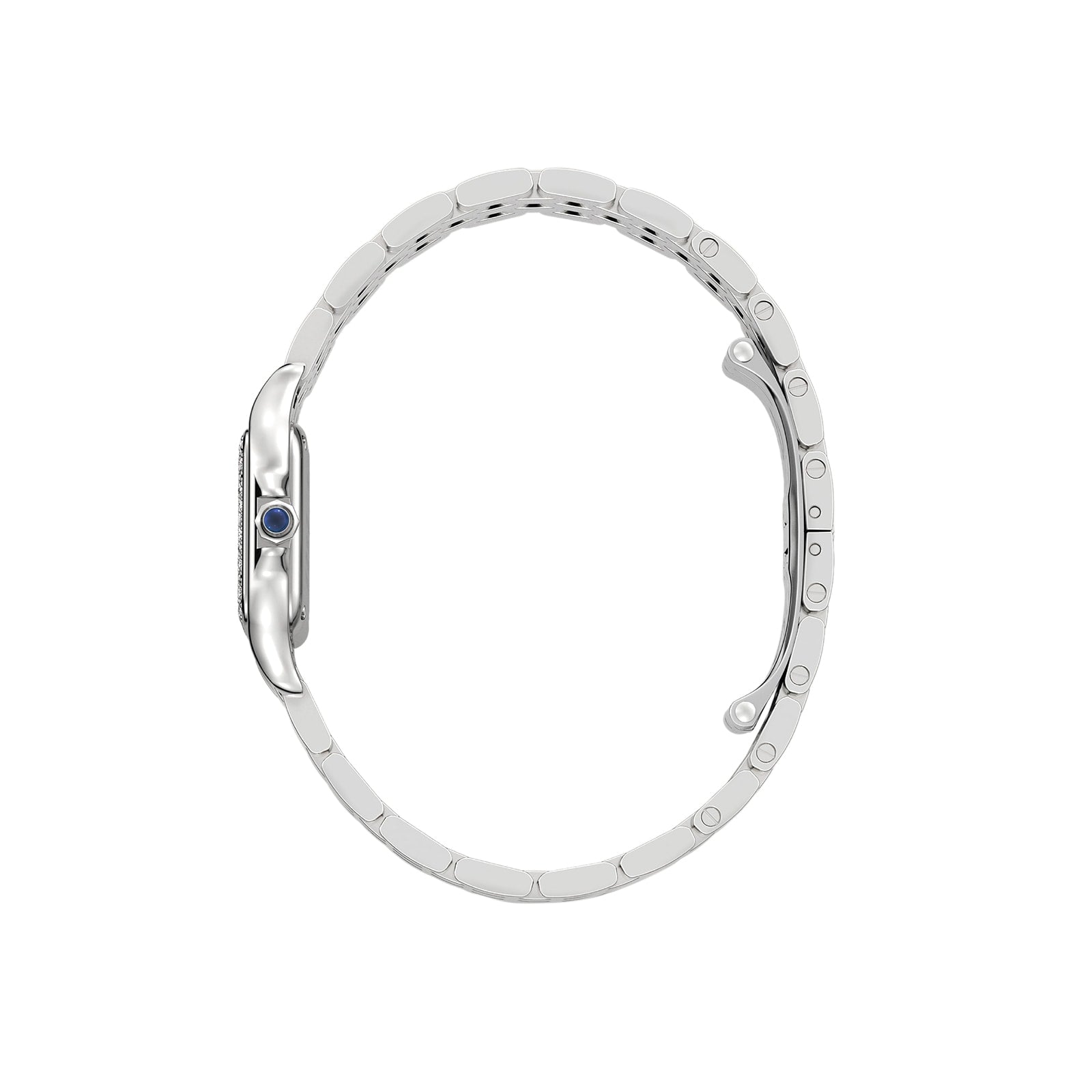 Panthère de Cartier - a quintessential jewellery watch Clean lines elevated by a creative, linear softness Beautifully housed in a 23 x 30mm steel case set with brilliant cut diamonds Silvered dial with a signature Cartier aesthetic Secured with a graceful steel bracelet inspired by the movement of the panther AN 80S AESTHETIC A supple and elegant timepiece, the Panthère de Cartier is timeless and iconic. Introduced in the 1980s and embracing the design trends of the decade, the collection is characterised by the ultra-flexible bracelet, inspired by the agile movements the Maison's emblematic animal - the panther. A quintessential jewellery watch, the Panthère prioritises clean lines, without losing a creative, linear softness. INSPIRED BY THE AGILITY OF THE PANTHER Elegant and refined, this iconic timepiece embodies Cartier's daring allure. The 23mm x 30mm steel case features softly rounded edges that enhance the graceful design. Framed by radiant brilliant cut diamonds, the silvered dial retains the brand's timeless aesthetic with blued-steel sword-shaped hands and classic Roman numerals. Powered by reliable Quartz movement, this model is water resistant to 3 bar (30 metres) and fastens securely with an agile steel bracelet.
