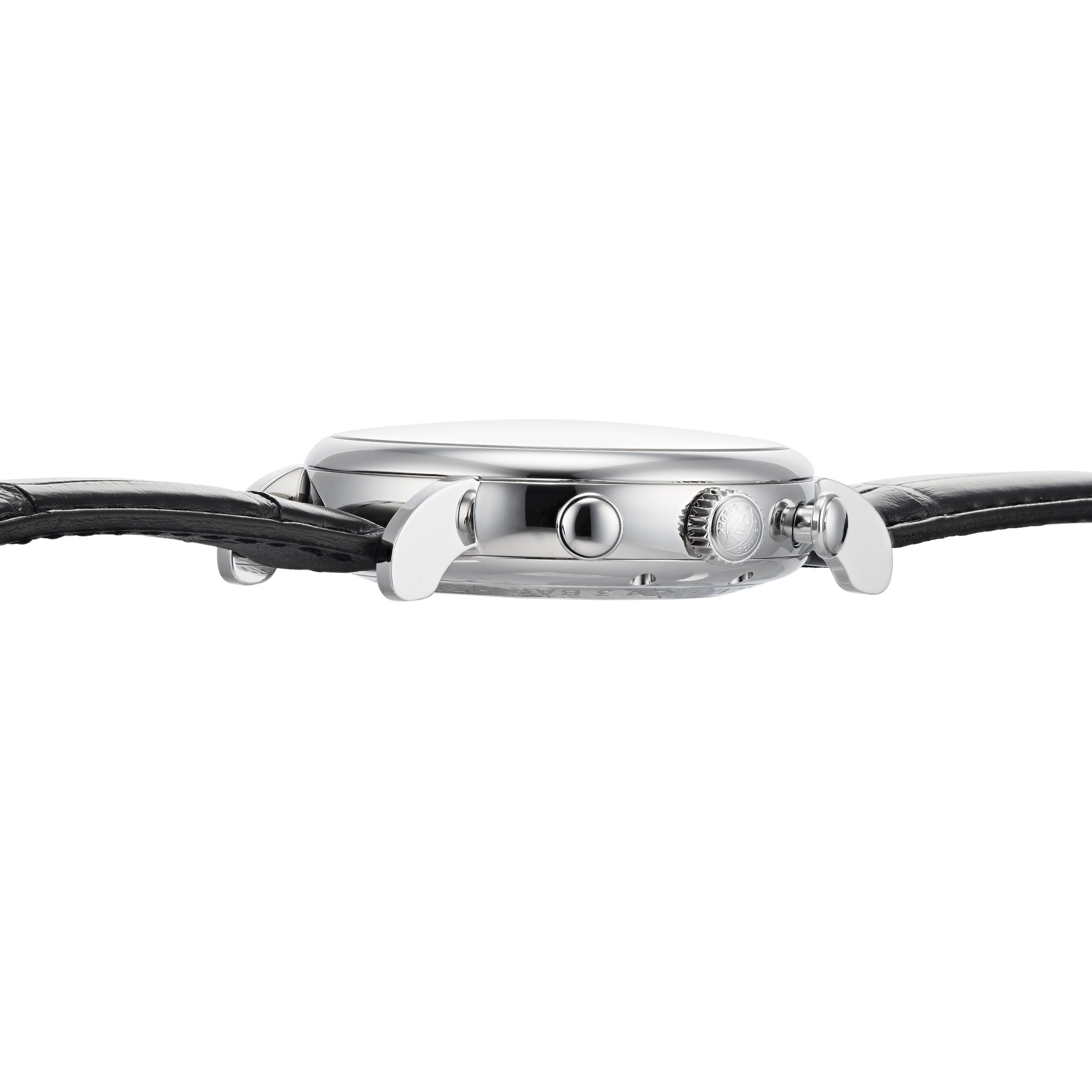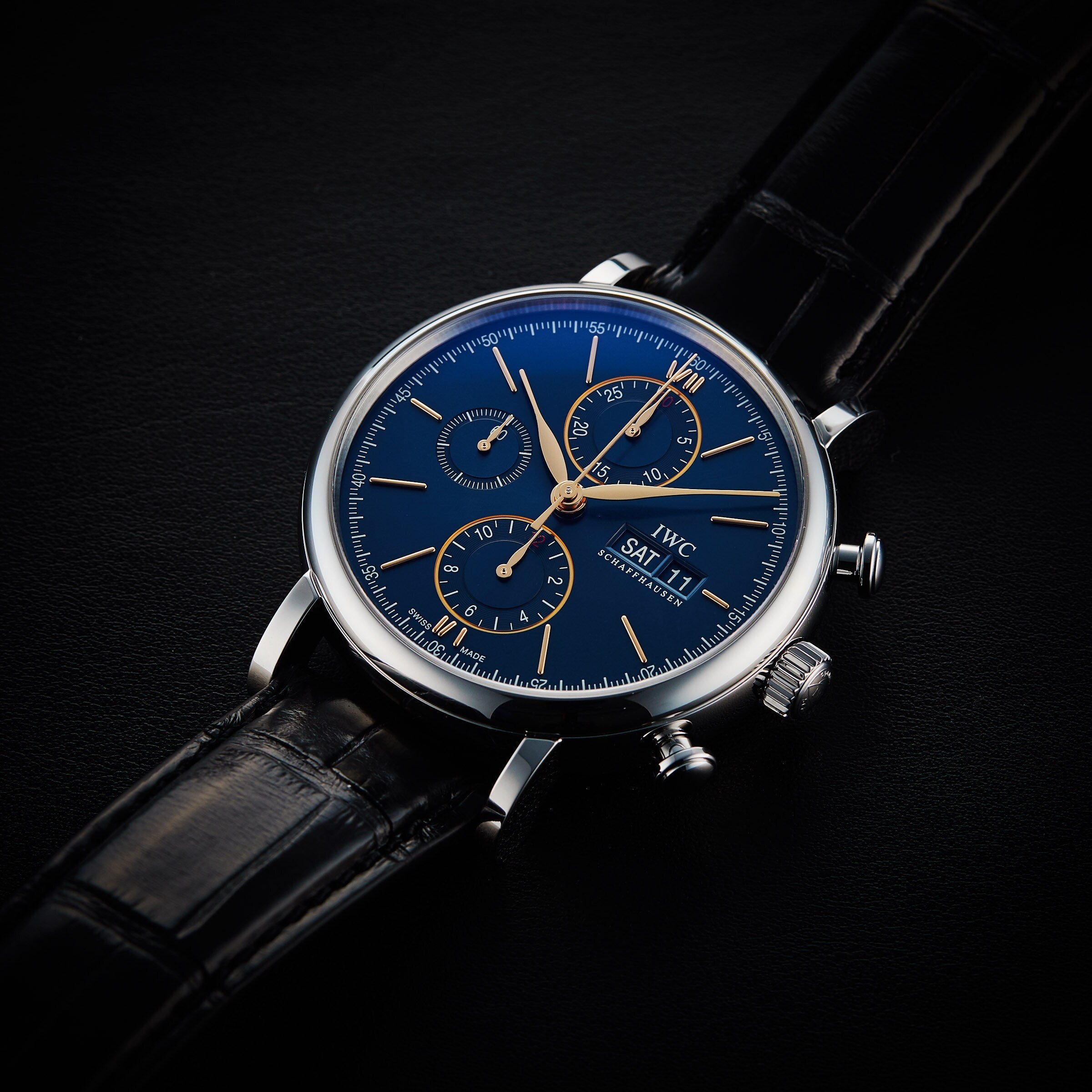 Reimaging an iconic design Powered by the 75320 calibre automatic self-winding movement Presented in a 42mm stainless steel case secured by a black alligator leather strap Water resistant up to 3 bar (30 metres) Showcasing luxurious chronograph functions SPORTING INSPIRATION Celebrating the IWC Schaffhausen vision of pairing impeccable Swiss precision with cutting edge technology, the Portofino collection takes its design cues from the 1960s, with elegantly sporty push-buttons and chronograph displays. For over 30 years, the collection has effortlessly encapsulated the laid-back Mediterranean lifestyle with understated luxury. With a distinctly sport-inspired aesthetic, this 42mm timepiece is timelessly elegant, powerful and precise. THE MASTER OF TIME For optimum security and comfort, this robust 42mm timepiece is presented on a black alligator leather strap and secured by a stainless- steel pin buckle fastening. Alongside a stainless steel case, this model showcases, for the first time, a complementary blue dial, home to gold-toned baton hands, a day and date display, and chronograph function with hour, minute, and second accuracy. Powered by the 75320 calibre automatic self-winding movement, the Portofino Chronograph builds a 44-hour power reserve and is water resistant up to 3 bar (30 metres).