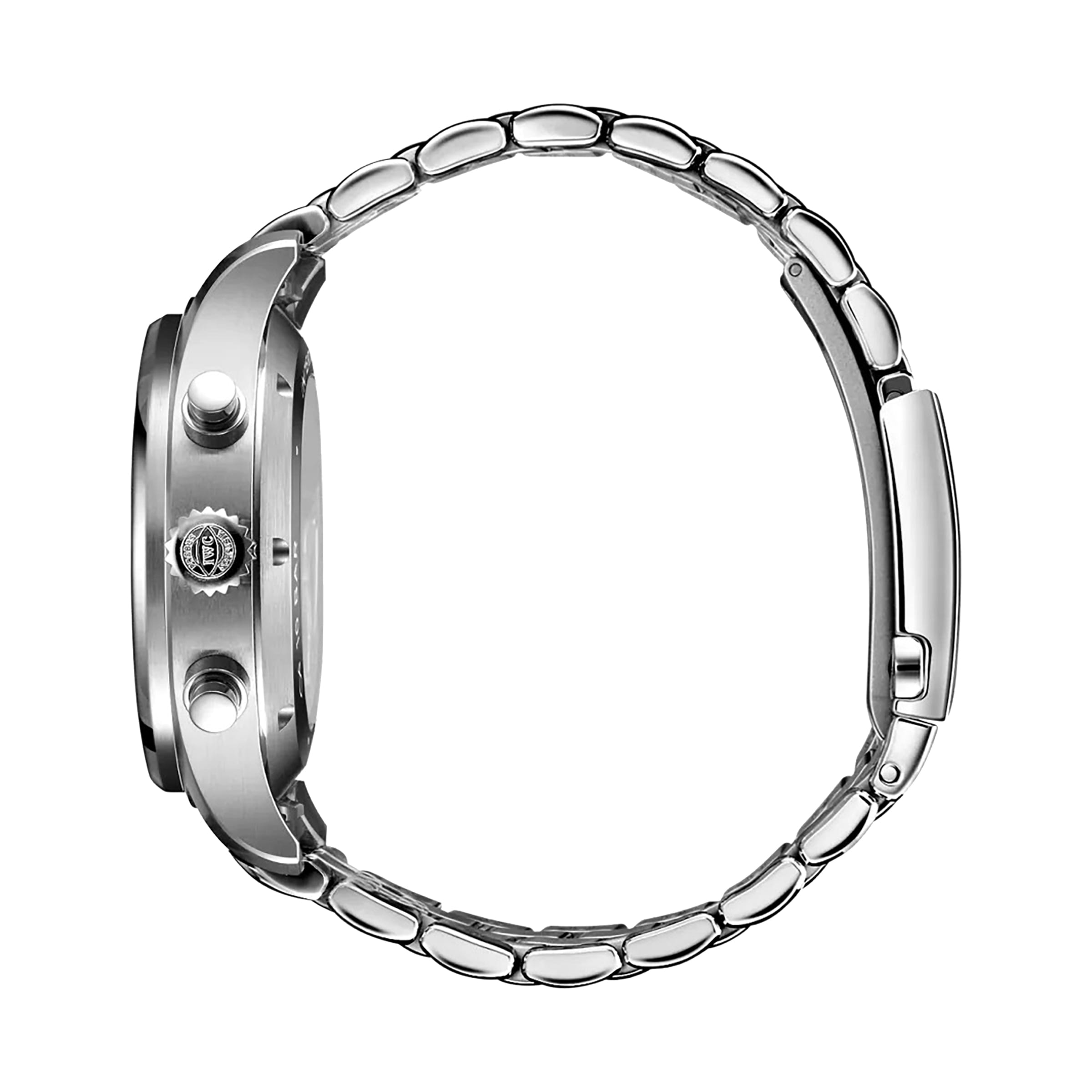 Pilot's Chronograph - reimagining an iconic design Presented in a 43mm stainless steel case and secured with a 5-link stainless steel bracelet Racing green dial designed in the style of an easy-to-read cockpit instrument Water resistant up to 10 bar (100 metres) Powered with precision by the IWC-manufactured 69385 calibre automatic movement THE EPITOME OF A VERSATILE SPORTS WATCH A quintessential tool for the modern-day explorer since 1994, the IWC Pilot's Watches collection showcases innovative engineering and an iconic Schaffhausen design. A versatile sports range, these reliable timepieces are ready to become a distinguished companion for every adventure, not just in the cockpit. Made from robust and exquisite materials, this 43mm model provides exceptional navigation and dependability for aviators. A DISTINGUISHED COMPANION IN ALL WALKS OF LIFE This statement pilot's watch is housed within a robust 43mm stainless steel case, with a 5-link stainless steel bracelet secured with the EasX-CHANGE system. Styled to resemble a cockpit instrument, the racing green dial is home to a day and date display, and advanced chronograph functions providing precision to the nearest hour, minute, and second. Powered with precision by an IWC manufactured 69385 calibre automatic movement with a Cotes de Geneve finish visible through the sapphire glass case back, this timepiece benefits from a 46-hour power reserve as well as water resistance up to 10 bar (100 metres).