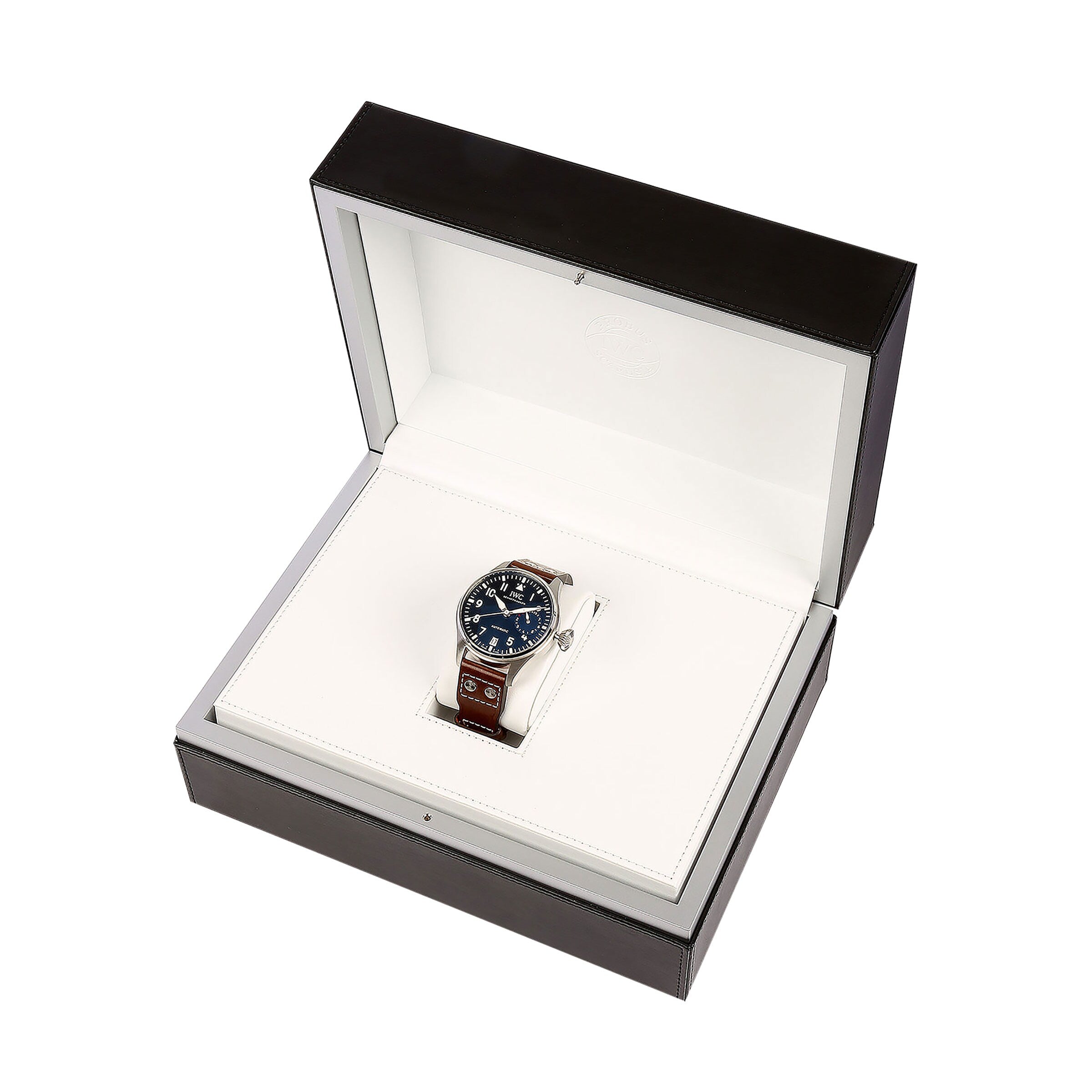 Reimagining an iconic design Powered by the 52110 calibre automatic movement Presented in a 46 mm stainless steel case and secured by a brown leather strap Water resistant up to 6 bar (60 metres) Showcasing a blue dial with luminescence for optimum visibility A PILOT’S COMPANION A quintessential tool for the modern-day explorer, IWC Pilot’s Watches showcase innovative engineering and an iconic Schaffhausen design. A versatile sports watch, this collection consists of reliable timepieces which are sure to become a distinguished companion. Made from robust and exquisite materials, this 46mm Big Pilot model provides exceptional navigation and dependability while paying tribute to aviator history. FOR EVERY CIRCUMSTANCE This Big Pilot model showcases a 46mm stainless steel case with a special engraving on the case back, paying tribute to the famous story of the ‘little prince’. Paired with a brown calfskin leather strap with contrast stitching and a folding clasp securement, this timepiece boasts timeless style in addition to incredible craftsmanship. The blue dial is equipped with baton hands and Arabic numeral hour markers coated in luminescence for optimum visibility in all conditions. A date display and power reserve indicator further elevate this timepiece. Powered by the 52110 calibre movement with pellaton automatic winding, this watch includes a seven day power reserve, and water resistance to 6 bar (60 metres). This piece is complete with a soft-iron inner case for protection against magnetic fields and the glass secured to prevent displacement by drops in air pressure.