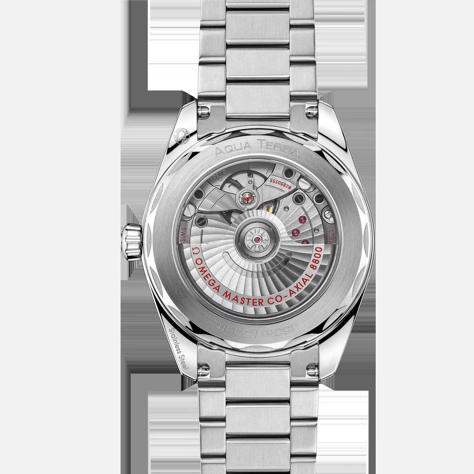 The Seamaster Aqua Terra is a superb tribute to OMEGA’s rich maritime heritage. This 38 mm model has a symmetrical case in stainless steel and a mesmerizing colour inspired by the ocean. The lacquered turquoise dial is accentuated with a black gradient effect and features facetted hands and hour markers with a grey PVD treatment and white Super-Luminova. The OMEGA logo and date window are also grey PVD treated, matching the transferred wordings in grey and turquoise. Comfort around the wrist is assured through the integrated metal bracelet, which is brushed and polished, and equipped with OMEGA’s easy comfort-adjustment system. On the inside, this watch is powered by OMEGA’s Co-Axial Master Chronometer Calibre 8800, certified at the industry’s highest standard by the Swiss Federal Institute of Metrology (METAS).