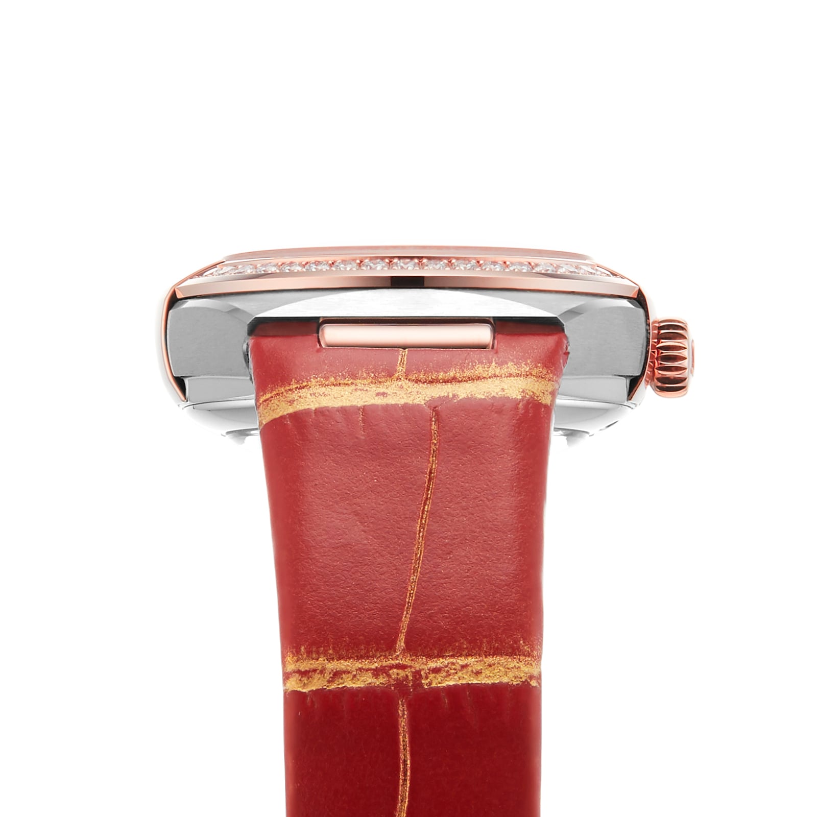 The latest generation of Constellation timepieces Constellation heritage with the 8700 calibre movement 29mm 18K Sedna™ gold and stainless steel case paired with a shimmering red leather strap Glistening red dial crafted from natural Aventurine stone Master chronometer certified by METAS A CONTEMPORARY REIMAGINING A symbol of precision and beauty since 1952, the iconic Constellation collection was created to pay tribute to Omega’s countless precision accomplishments during the early 20th century. Each embodying dramatic and enduring design, the latest generation of models offers a wonderfully modern take on the famous Constellation style. Both the bezel and the statement claws now present a slimmer look, while the date window sits below the star at 6 o’clock and the hands have been crafted into a skeletonised leaf. DAZZLING DIAMOND BEZEL This luxurious, 29mm timepiece pairs an 18K Sedna™ gold and stainless steel case, with a glistening red leather strap. The natural, red Aventurine stone dial sparkles with 18K Sedna™ gold hands and diamond-set hour markers, framed by a sparkling, diamond-paved bezel. An 8700 calibre movement drives the chronograph with exceptional precision.