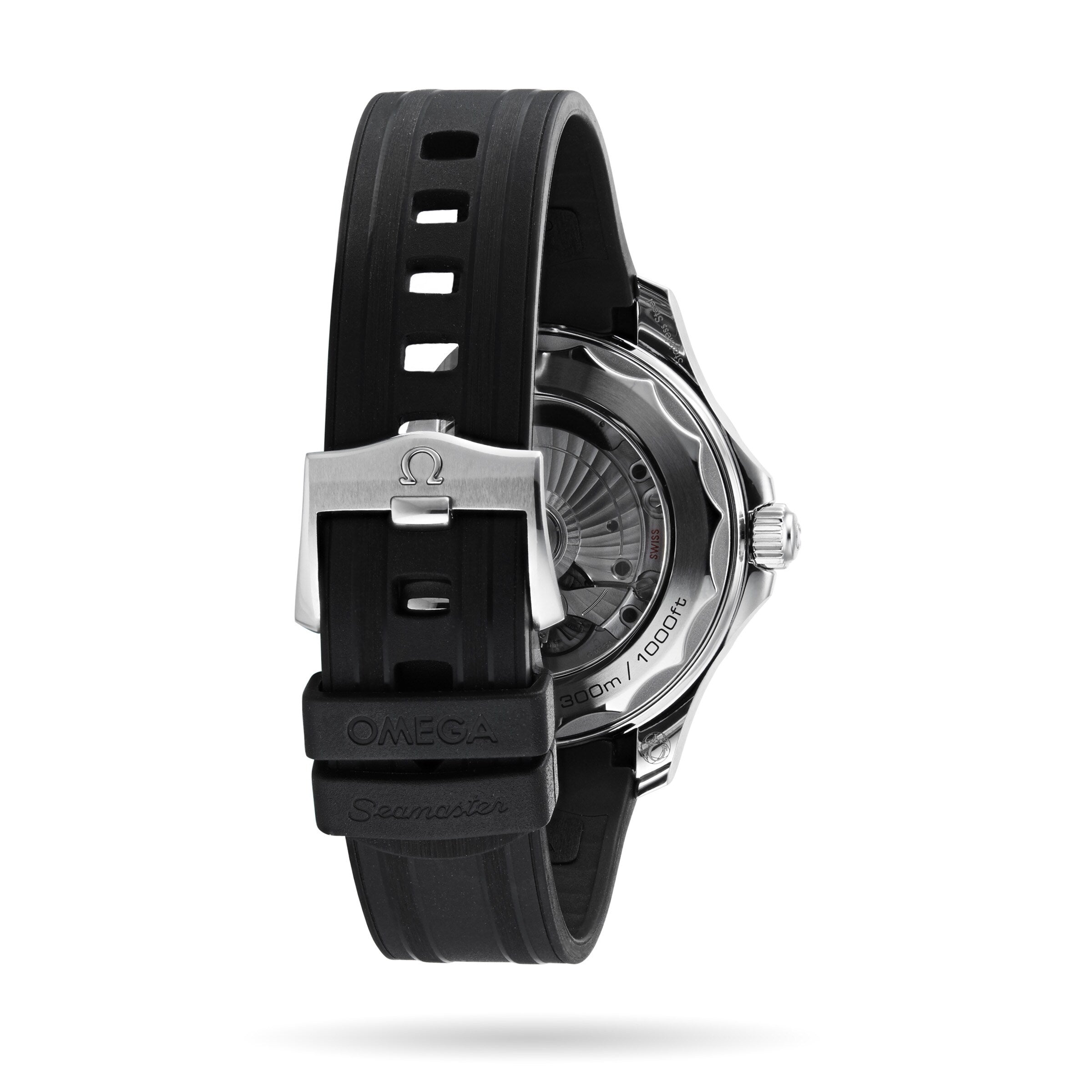 The modern iteration of the iconic 1957 timepiece Seamaster 300 - OMEGA’s classic dive watch for professionals The James Bond watch for over a quarter of a century OMEGA Calibre 8800 movement, industry-leading precision 42mm stainless steel case with black ceramic bezel and white dial PROFESSIONAL HERITAGE The famous Seamaster Diver 300M was originally released in 1993, one of the first OMEGA timepieces to feature the ‘Professional’ inscription on the dial, garnering further renown for being chosen by the James Bond franchise for its military heritage, dry martini elegance and action-packed durability. Maintaining the long ocean heritage of OMEGA, the modern Seamaster Diver 300M collection is updated using cutting-edge technology, resulting in a luxury watch with industry-leading accuracy and timeless design. INDUSTRY LEADING PRECISION This stainless steel, 42 mm model features a black ceramic bezel with a diving scale in white enamel. The dial is polished white ceramic and features a laser-engraved wave pattern with a date window at 6 o’clock. The skeleton hands and raised indexes are rhodium-plated and are filled with white Super-LumiNova, while the helium escape valve has been given a new conical design. The watch is paired with a black rubber strap and powered by OMEGA’s Master Chronometer Calibre 8800 movement, officially certified by METAS to withstand magnetic fields up to 15,000 gauss. The wave-edged caseback houses a sapphire crystal for viewing this magnificent movement.