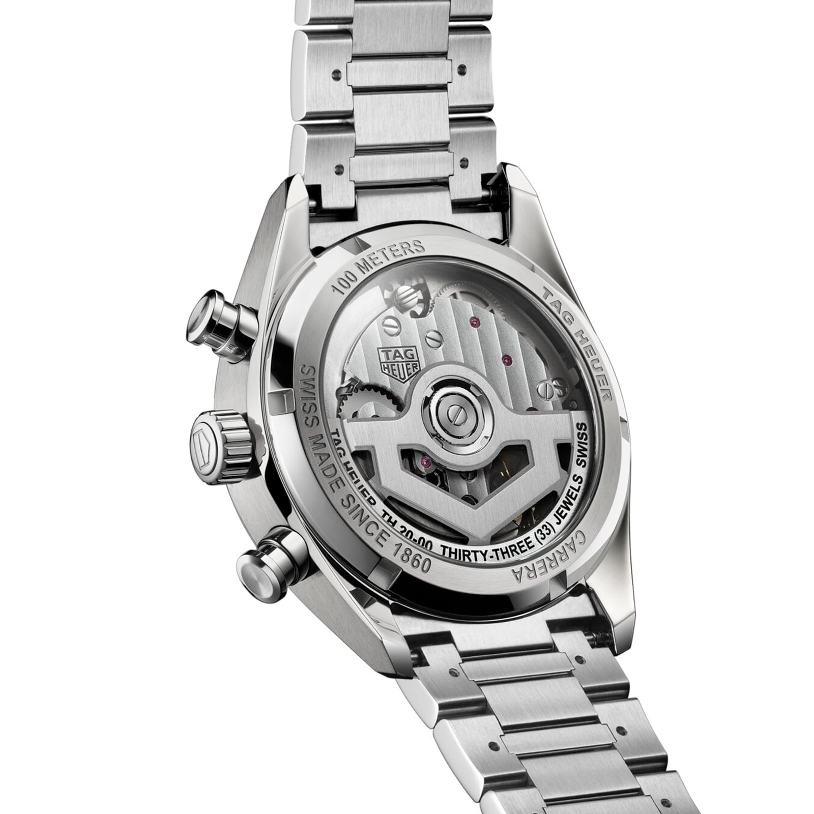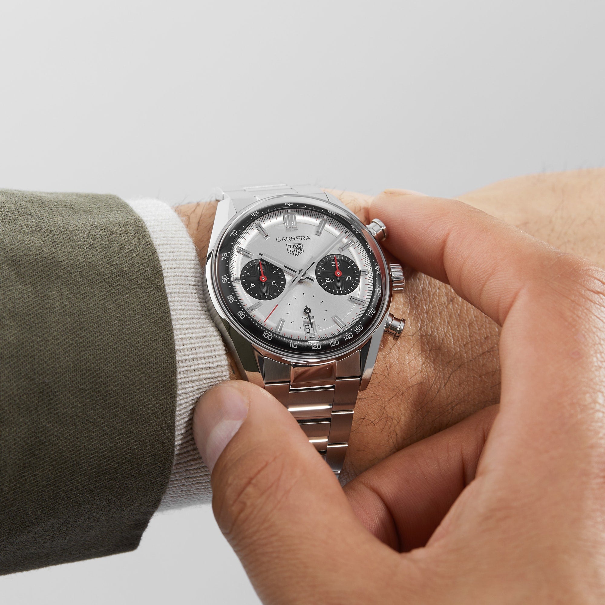 Carrera - the rebirth of a legend Presented in a 39mm steel bezel-free case with a co-ordinating three-row bracelet Silver sunray brushed dial with twin black azure sub-dials Driven by the in-house TH20-00 automatic movement Complete with an 80-hour power reserve and water resistance to 10 bar (100 metres) A TRIBUTE TO THE CARRERA PANAMERICANA RACE Born on the racetracks in 1963, the Carrera collection embraces the spirit of endurance and outstanding performance. Designed for professional drivers, yet with an elegant sense of style, the collection pays tribute to the infamous Carrera Panamericana race. A SIGNATURE DESIGN WITH A MODERN TWIST Designed for a new era of racing and heritage enthusiasts, this Carrera model features a bezel-free, 39mm steel case paired with a chic three-row steel bracelet. Covered by domed sapphire crystal, the silver sunray brushed dial features twin black azure sub-dials, while the curved flange ensures optimal legibility. Driven by the in-house TH20-00 automatic movement, this watch is equipped with an 80-hour power reserve and water resistance to 10 bar (100 metres). A seamless blend of the brand's rich past and innovative future.