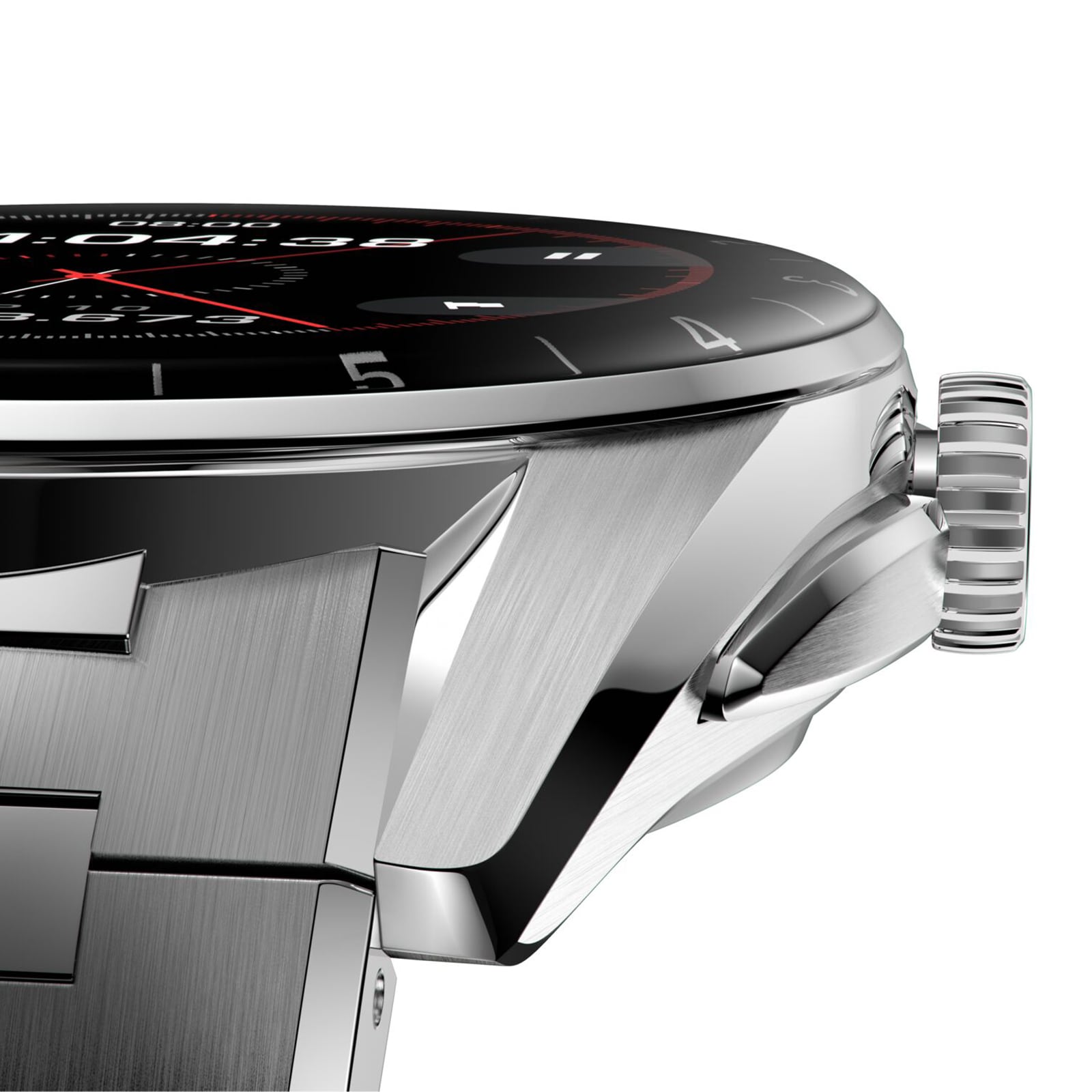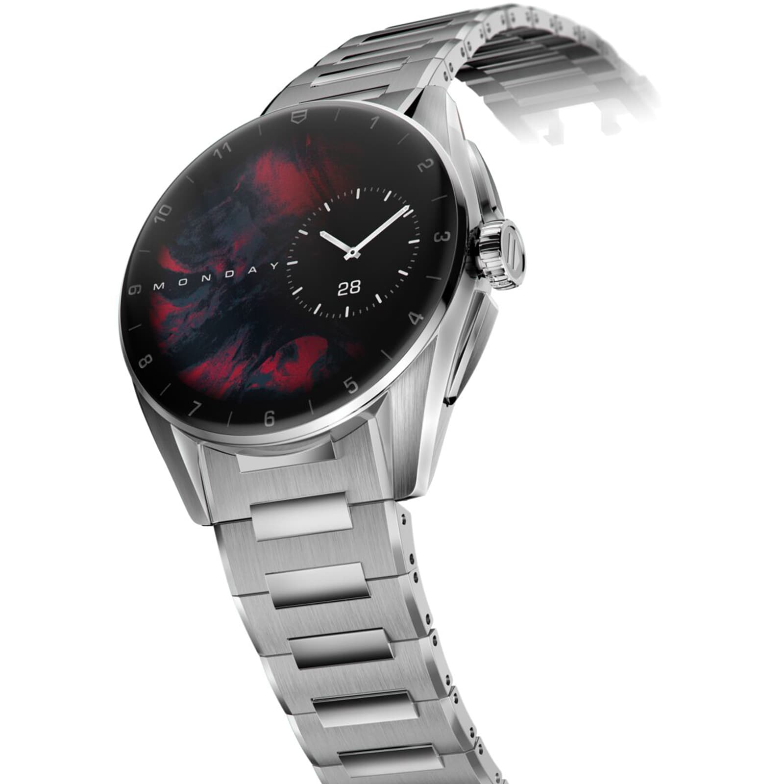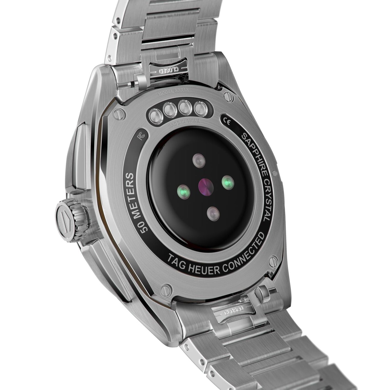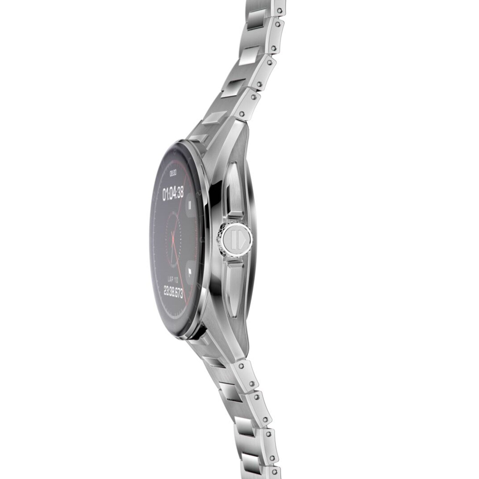 Connected Calibre E4 – luxury meets performance Choose your own dial on the endless screen Comfortable, ergonomic perforated rubber strap Elegant 42mm steel case with slim lines and superior ergonomics Featuring pre-installed applications CUTTING EDGE TIMEKEEPING Bringing together avant-garde design and cutting edge technology, the Connected Calibre E4 collection delivers peak performance and unmatched elegance. Finding the perfect balance between innovation and high end watchmaking, this Connected model allows you to do everything from track your workout to display your virtual artwork, and everything in between. Customised for your best performance, this elegant timepiece pushes the boundaries of technology and design. THE ULTIMATE LUXURY SMARTWATCH The 42mm round steel case is crafted with slim lines and superior ergonomics, while the versatile H-shape steel bracelet is fully interchangeable so that you can match your watch to your mood. Resistant to wear and aging, the large touch screen is framed by a fixed ceramic bezel and protected by sapphire crystal. Powered by Wear OS by Google, this state-of-the-art smart watch offers extensive functionality, including a heart rate monitor, compass, microphone, and accelerometer, as well as pre-installed apps, such as TAG Heuer Wellness.