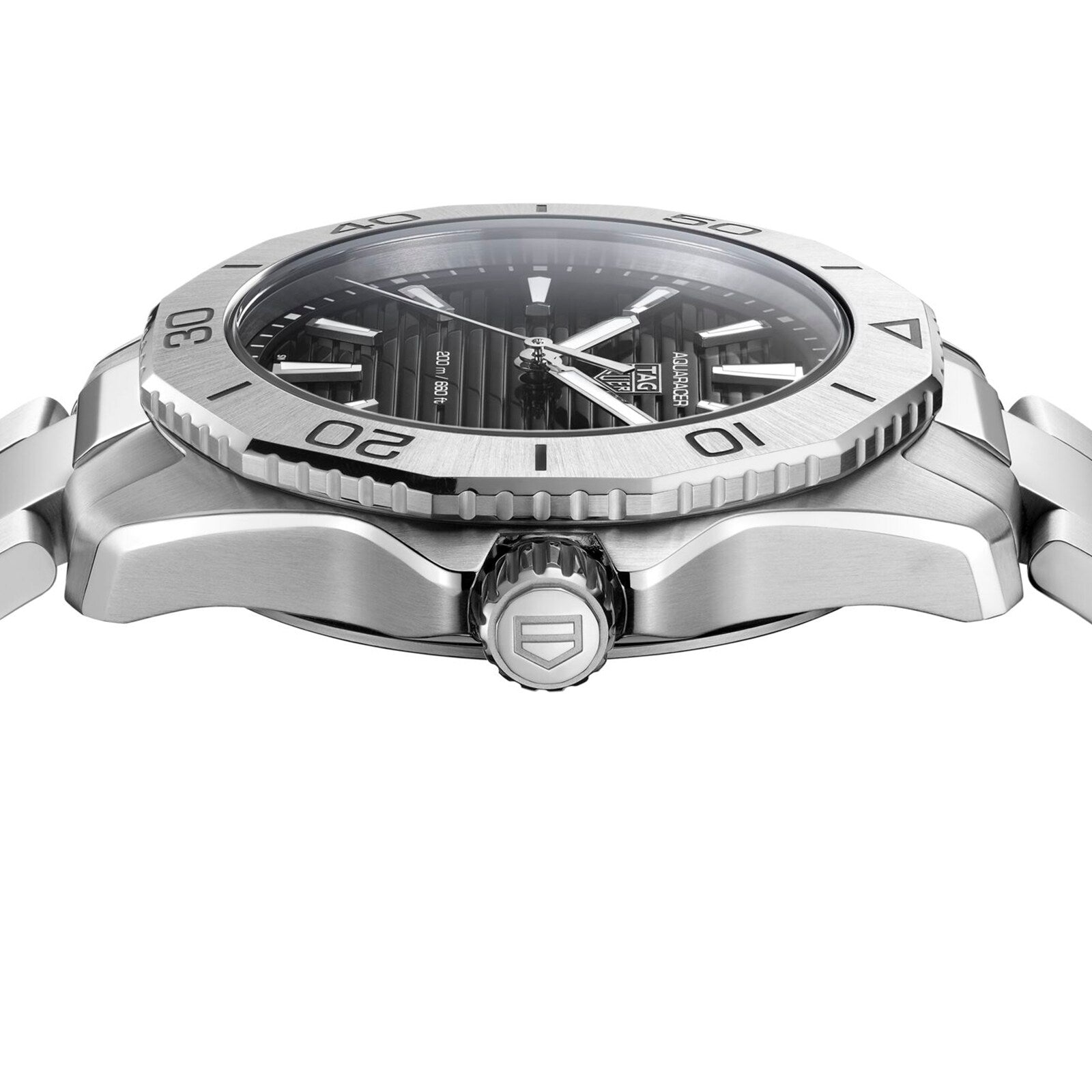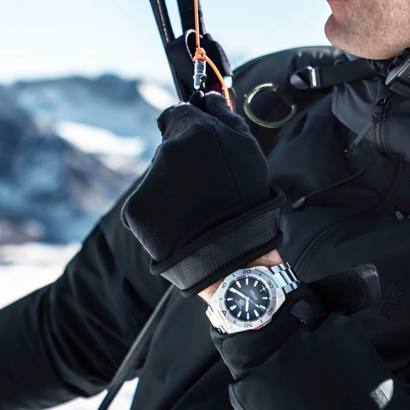 Aquaracer – pushing limits in search of greater performance An essential ally in your achievement Versatile 40mm stainless steel case with a co-ordinating steel bracelet Black sunray brushed technical dial with rhodium-plated hands and hour markers for optimum legibility Driven by powerful Quartz movement OVERCOME YOUR LIMITS Re-launched in 2021, the Aquaracer collection has re-written sports watch design and performance codes to take wearers beyond the edge as they push their limits in search of ever-greater performance. The Aquaracer Professional 200 collection unites robust construction with boldness of design. Prestigious and resilient, the 40mm stainless steel case embraces refined ergonomics and finishes, while the black sunray brushed dial features a bold horizontal pattern with rhodium-plated hands and indexes for enhanced visibility. ENDURE ANY CONDITIONS This versatile 40mm model pairs a stainless steel case with a co-ordinating steel bracelet, complete with double safety push buttons and a comfort extension link. Finished with a horizontal pattern, offering a nod to the decks of boats, the dial features luminescent hands and hour markers for legibility in even the most extreme environments. Incredible precision is provided by a reliable quartz movement, while water resistance to 20 bar (200 metres) further enhances performance.