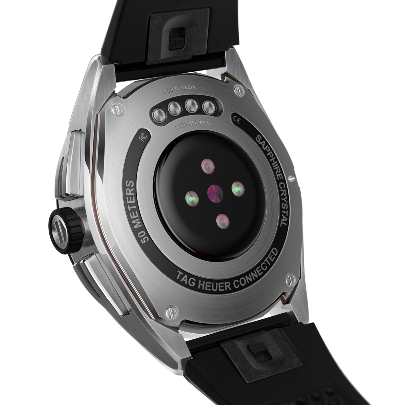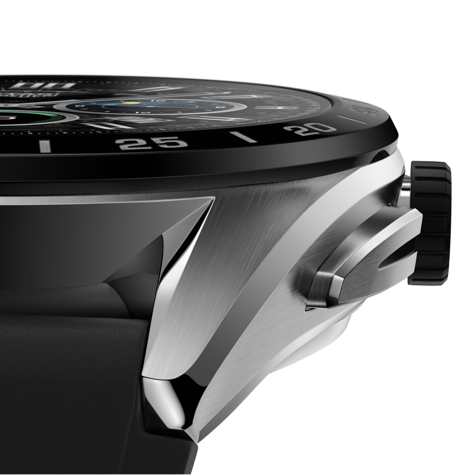 Connected Calibre E4 – luxury meets performance Large screen framed by a black ceramic bezel Comfortable, ergonomic perforated rubber strap Elegant 45mm steel case with sharp and sporty lugs Featuring the TAG Heuer sports exclusive application THE NEXT GENERATION OF TIMEKEEPING Bringing together avant-garde design and cutting edge technology, the Connected Calibre E4 collection delivers peak performance and unmatched elegance. Finding the perfect balance between innovation and high end watchmaking, this Connected model allows you to do everything from track your workout to display your virtual artwork, and everything in between. BUILT TO PERFORM This 45mm model pairs a steel case with a black rubber strap, which is fully interchangeable so that you can match your watch to your mood. Resistant to wear and aging, the large touch screen is framed by a black ceramic bezel and protected by sapphire crystal. Powered by Wear OS by Google, this state-of-the-art smart watch offers extensive functionality, including a heart rate monitor, compass, microphone, and accelerometer, as well as pre-installed apps, such as TAG Heuer Wellness. The luxurious perforated rubber strap has been designed to deliver enhanced comfort during workouts, while the TAG Heuer sports exclusive application offers the functionality needed to take on any challenge and can be personalised to your goals. Or, if you’re more interested in NFTs, you can transfer your favourite NFTs to your new Lens watch face and display your collectible virtual artworks on your wrist.
