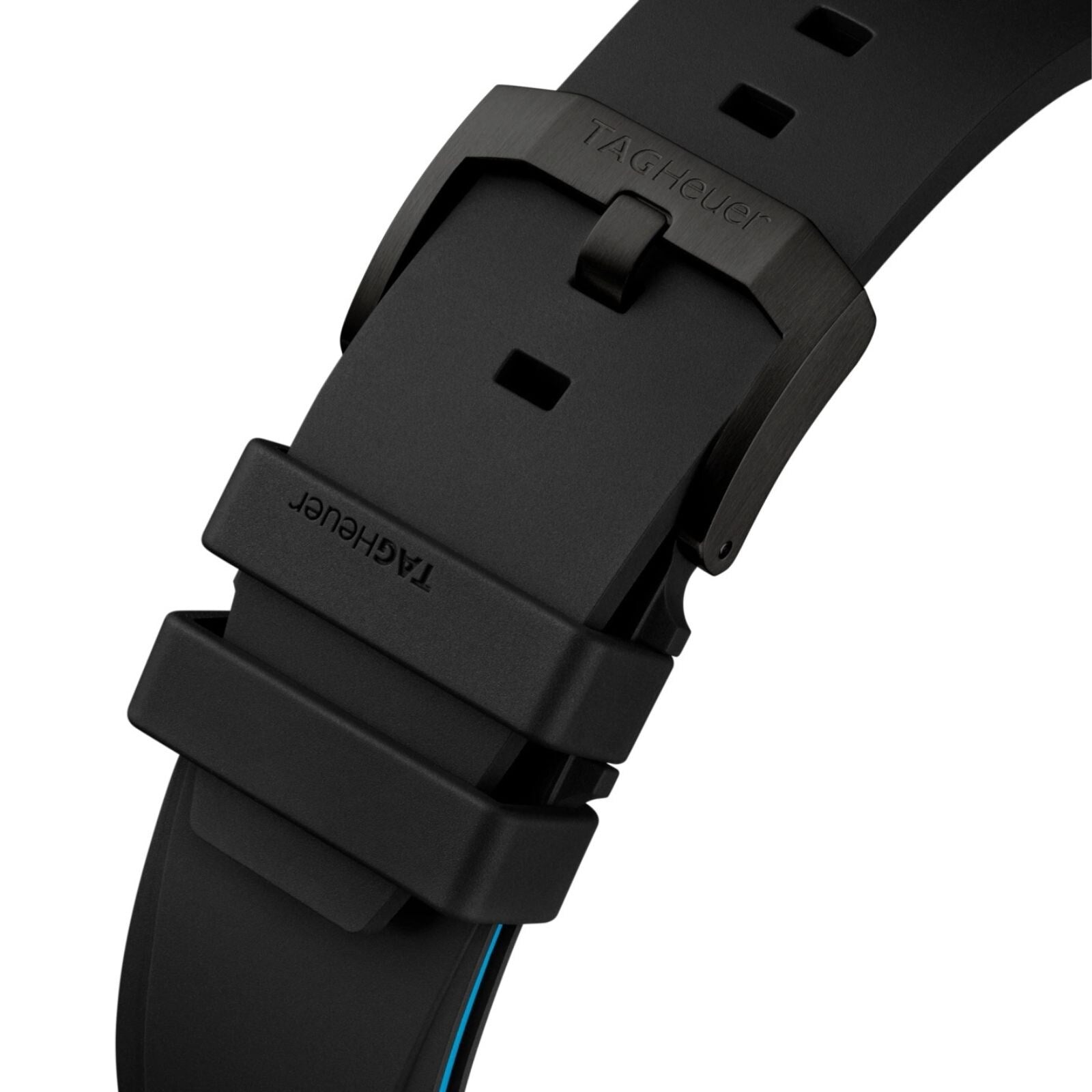 Introducing a new chapter in the TAG Heuer Formula 1 collection, the 44 mm automatic chronograph embodies the fearless spirit of racing. With its robust Grade 2 titanium case and dynamic rubber strap, this timepiece is built for speed and precision, both on and off the track. The black opalin dial features a bold blue lacquered track, adding a touch of vibrancy. The Super-LumiNova®- applied hands and indexes ensure optimal readability, while the tachymeter bezel enhances the racing aesthetic. Powered by an automatic movement, this chronograph offers seamless timekeeping. The sandblasted push buttons and screw-down crown add a rugged touch, perfectly complementing the watch’s bold design.