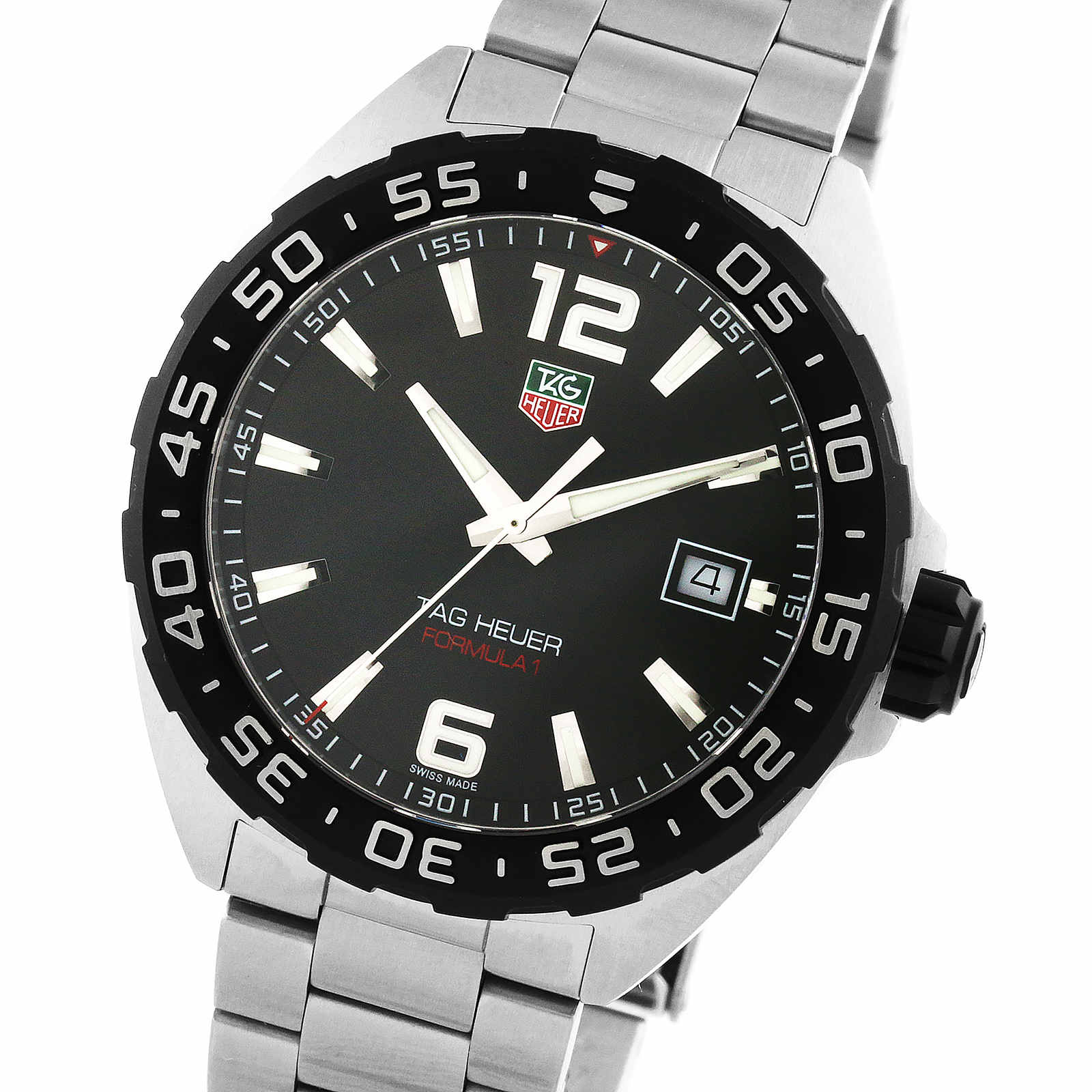 The Formula 1 range pairs iconic style with innovative performance Designed with speed and power in mind 41mm steel case with bold details Striking black dial with sleek stainless steel batons Powered by exceptional quartz movement BRINGING THE RACETRACK TO YOUR WRIST A timepiece built for performance and style, the TAG Heuer Formula 1 range takes inspiration from the thrill of the racetrack, pairing it with an iconic design and perfect precision. Sophisticated yet versatile, boasting functionality and style. The 41mm steel case encompasses a sleek black dial with striking silver indexes for a refined yet bold design. SPEED AND SOPHISTICATION ENTWINED This 41mm model pairs a smooth, stainless steel case with accompanying stainless steel strap and a unidirectional, titanium carbine coated turning bezel. A small date window sits at the 3 o’clock position, while the large 12 o’clock and 6 o’clock hour markers allow you to effortlessly keep track of time. Water resistant up to 20 bar (200 meters), this classic timepiece is built for performance, both on and off the racetrack.