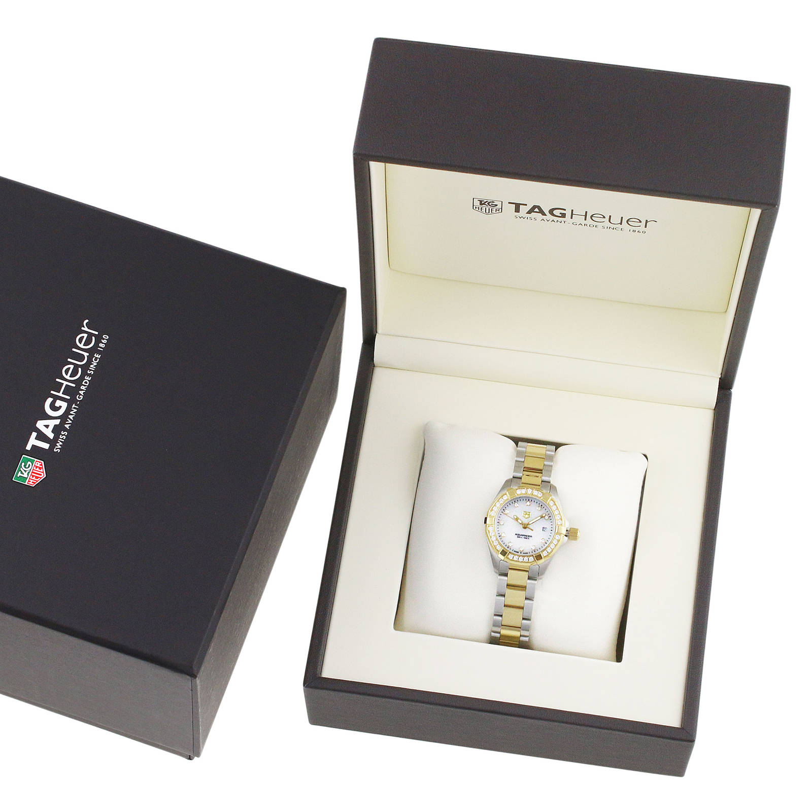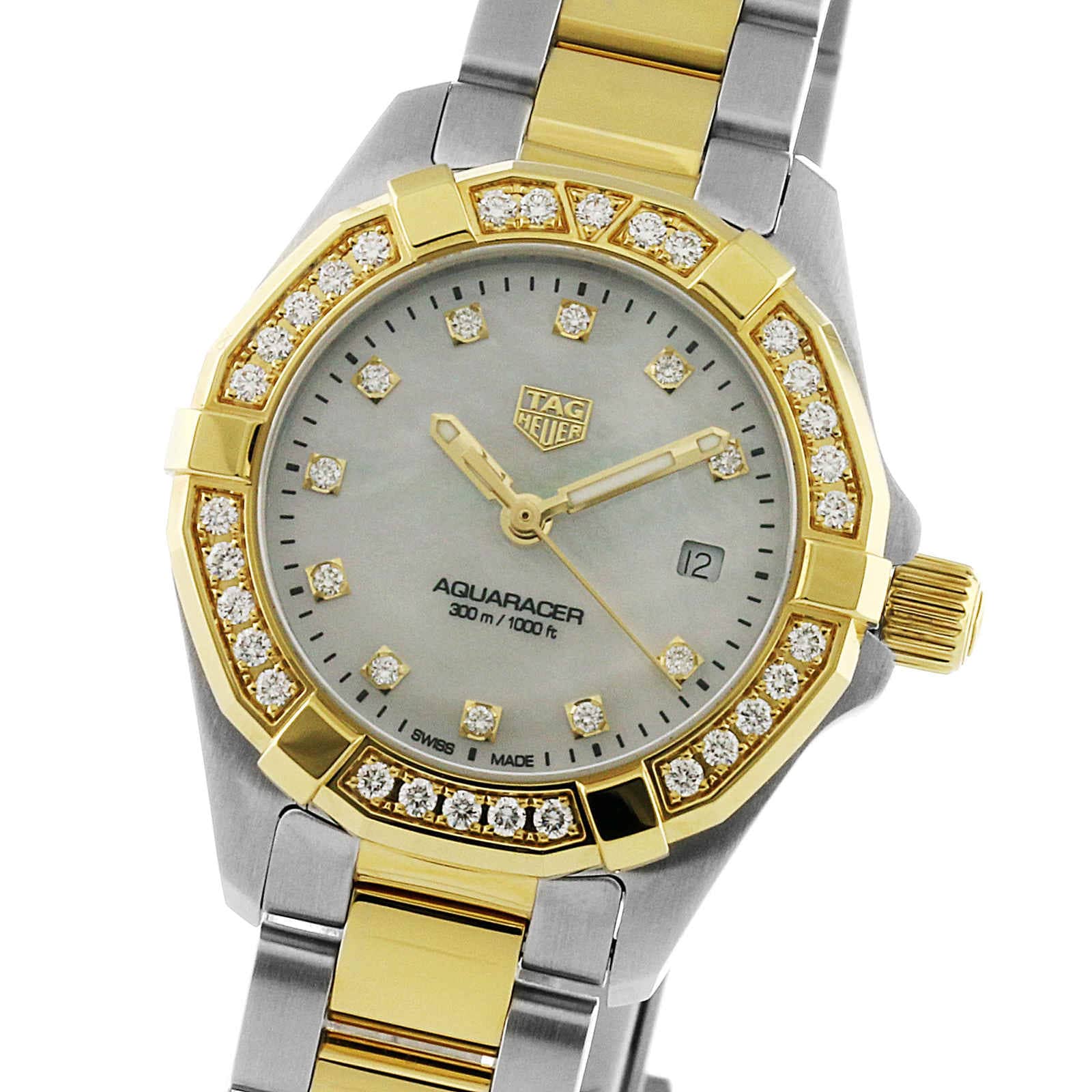 Aquaracer – pushing limits in search of greater performance Refined elegance with a sporting pedigree Petite 27mm stainless steel and 18K 2N yellow gold plated case with a gold-plated bezel set with 35 glistening diamonds Ethereal white mother-of-pearl dial with 11 diamond indexes Powered by precise Quartz movement DO ANYTHING, GO ANYWHERE Re-launched in 2021, the Aquaracer collection has re-written sports watch design and performance codes to take wearers beyond the edge as they push their limits in search of ever greater performance. This petite, Aquaracer 300 27mm model updates the collection’s sporting pedigree with elegant touches, including a stainless steel and 18K 2N gold-plated case, a refined white mother-of-pearl dial with 11 glistening diamond hour markers, and a further 35 diamonds set in the unidirectional bezel. REFINED ELEGANCE WITH A SPORTING PEDIGREE Crafted with beautiful proportions, this luxurious model combines 18K 2N gold with glistening diamonds. Powered by a reliable Quartz movement, the mother-of-pearl dial presents gold-plated hands and a date display at 3 o’clock. Water resistance to 30 bar (300 metres) and an extendible diving bracelet ensure that this timepiece is as functional as it is visually striking.
